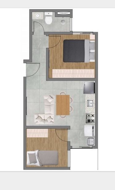 2 Dormitórios1 Banheiro1 Sala de TV1 Cozinha1 Área de serviço
