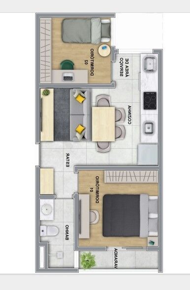 2 DormitóriosÁrea Privativa