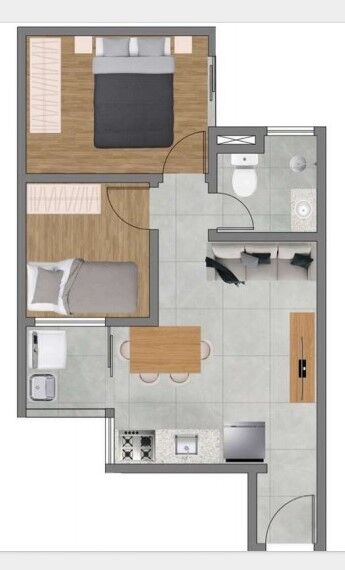 2 Dormitórios1 Banheiro1 Sala de TV1 Cozinha1 Área de serviço