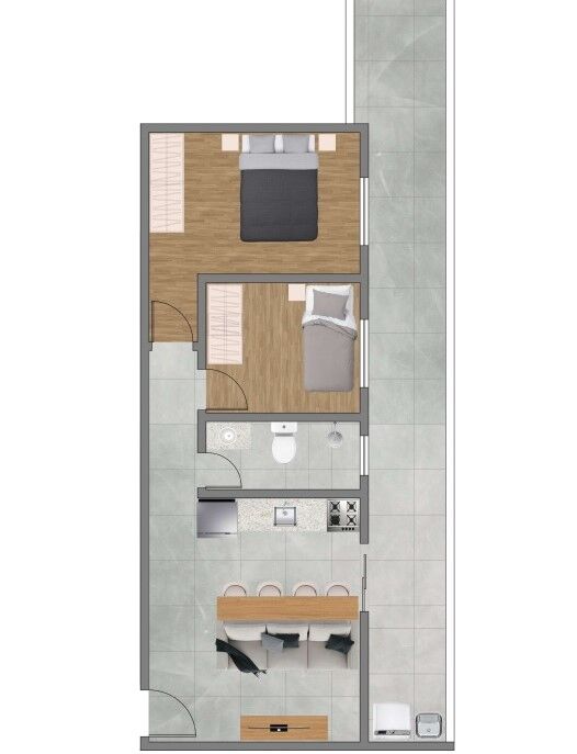2 Dormitórios1 Banheiro1 Sala de TV1 Cozinha1 Área de serviço