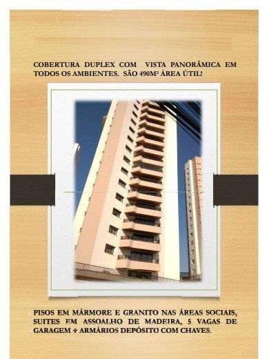 COBERTURA DUPLEX contendo quatro amplas suítes com armários planejados sendo um com closet, ampla sala no primeiro pavimento com sacada , ampla cozinha com armários planejados , área de quintal com churrasqueira coberta e área de serviço no segundo pavimento, cinco vagas de garagem