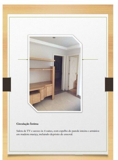 4 Dormitórios, sendo 4 suítes3 Banheiros5 VagasGaragem Coberta1 Closet1 Escritório1 Copa1 Sala de TV1 Cozinha1 Lavabo1 Sala de jantar1 Sala de estar496 Áreas de serviço1 Dependência p/empregada