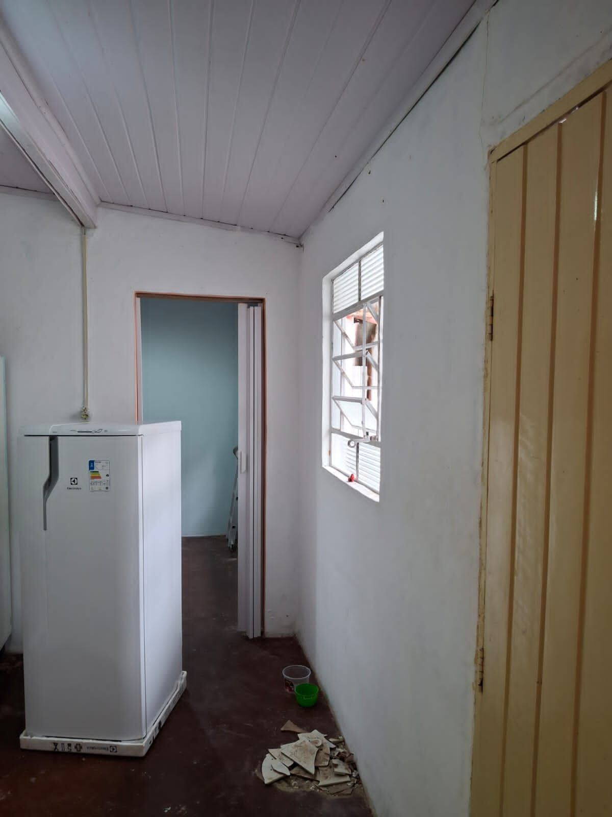 Casa com 1 dormitório , sala e cozinha conjugadas , banheiro e lavanderia externa .