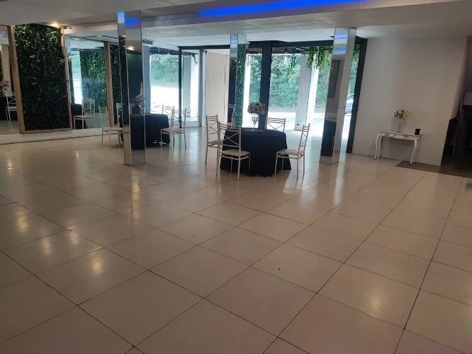 Salão Comercial com 220 ms ² pé direito de 3 ms com teto rebaixado todo em piso porcelanato contendo dois wcs , área de escritório / estoque , duas vagas cobertas