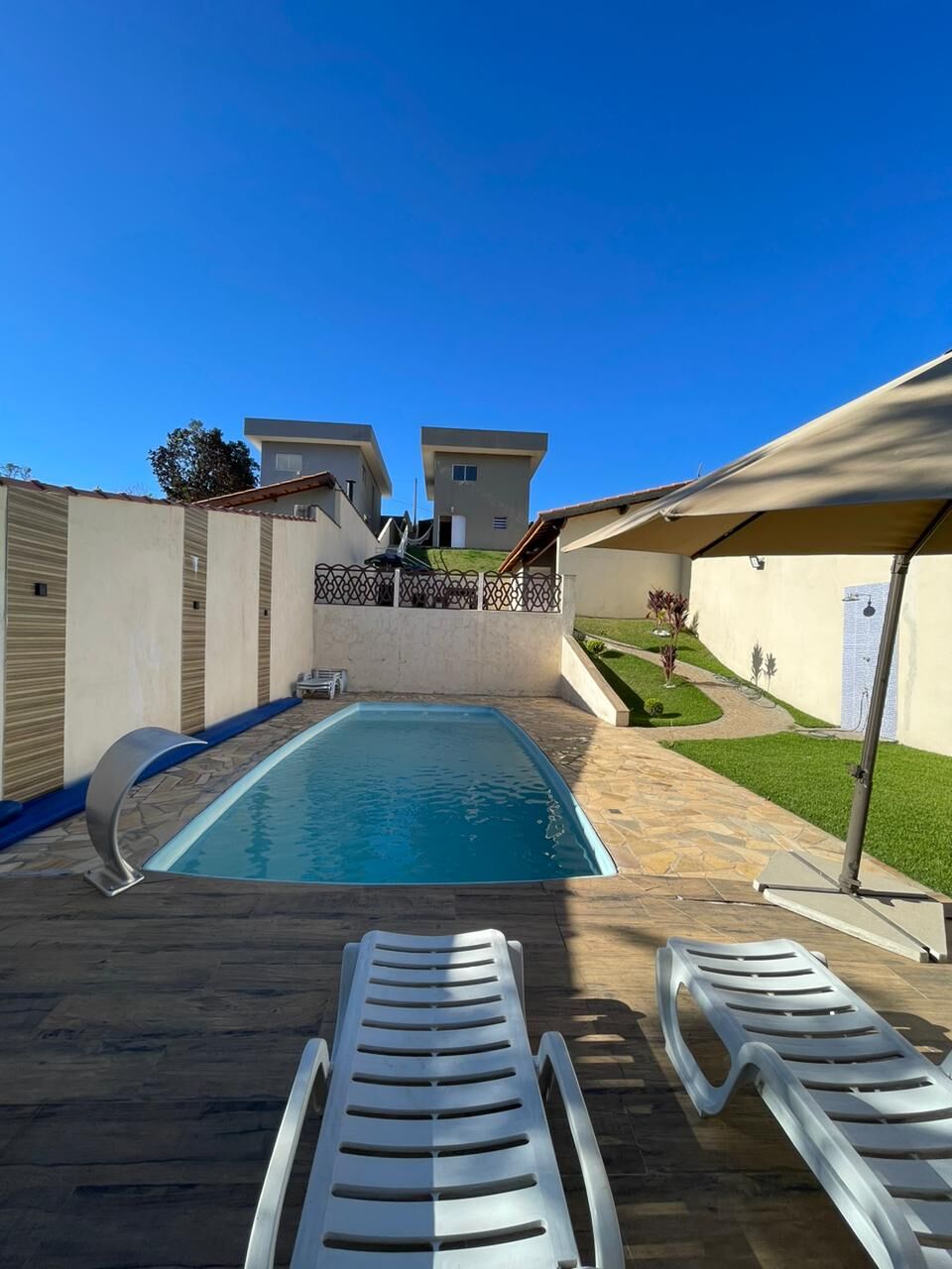 Amplo sobrado novo com fino acabamento e planta invertida contendo dois amplos dormitórios com armários sendo dois suítes , sala ampla com piso em porcelanato e cozinha integrada com armários planejados , lavabo, área de serviço , edícula com quarto e Wc, piscina , churrasqueira amplo quintal gramado , três vagas de garagem
