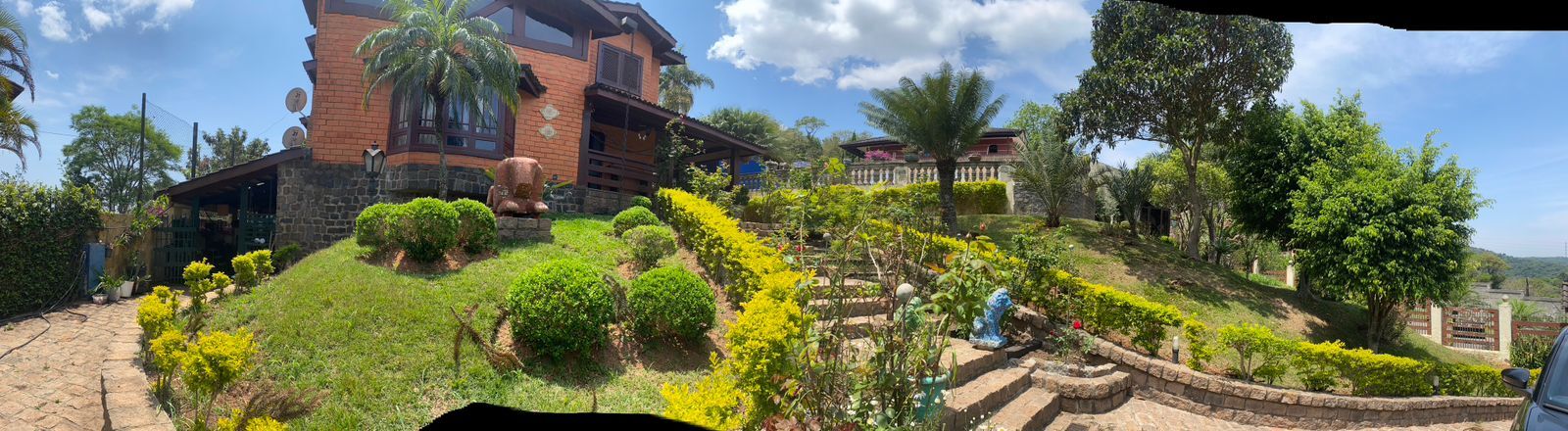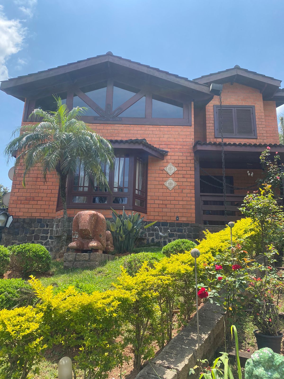 1.450 metros de terreno, 450 metros de construção, 4 salas, cozinha enorme integrada com salas, dispensa, copa, 1 suíte no andar das salas,1 suíte master com vista panorâmica com sacada (andar superior), 2 dormitórios com wc,(andar superior), escritório com mezanino(andar superior), Sotão com 3 janelas, lavanderia gigante, dormitório e Wc de empregada, 2 depósitos na lavanderia, Oficina, Espaço coberto ao lado da lavanderia.(30 metros), varanda, capela, fogo de chão, piscina, churrasqueira com wc, copa/bar na churrasqueira, canil para 2 cachorros, horta, gramado,