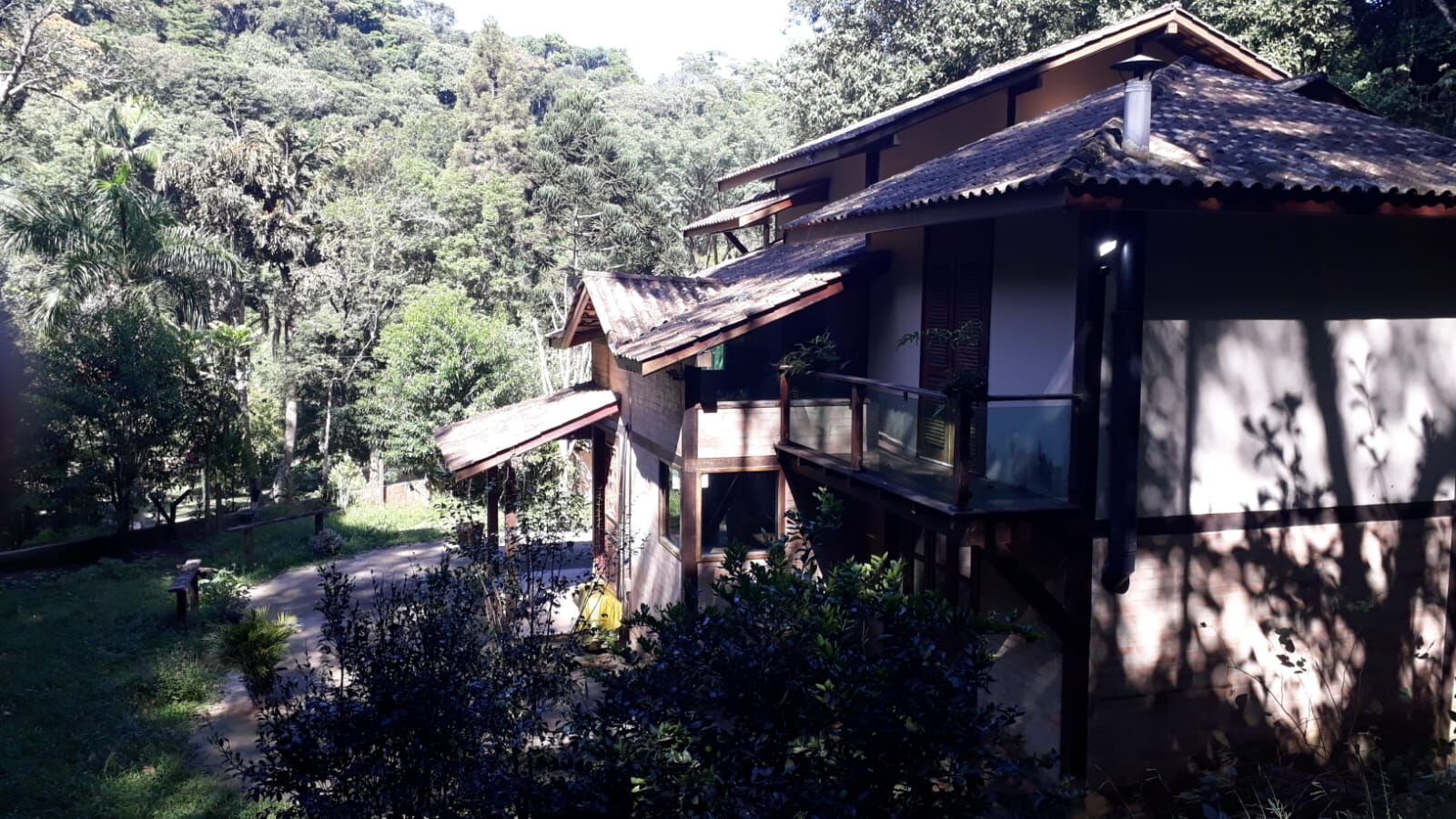 Amplo sobrado contendo sala com pé direito duplo, rica em vidros, madeira e portas de demolição. Sala de estar com lareira, cozinha americana com despensa. Piso em porcelanato rústico três dormitórios sendo um suíte com closet e todos com armários planejados e em assoalho de madeira. Guarda-corpo em vidro. Área de serviço fechada, dependência de empregados amplo mezanino que pode ser transformado em quarto dormitório. Terreno com 1085m2 em rua sem saída. Condomínio fechado.